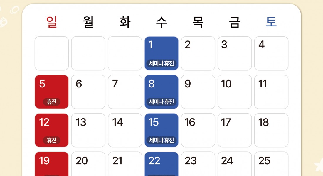 진료일정을 참고하시어 예약 및 내원에 불편함 없으길 바랍니다.