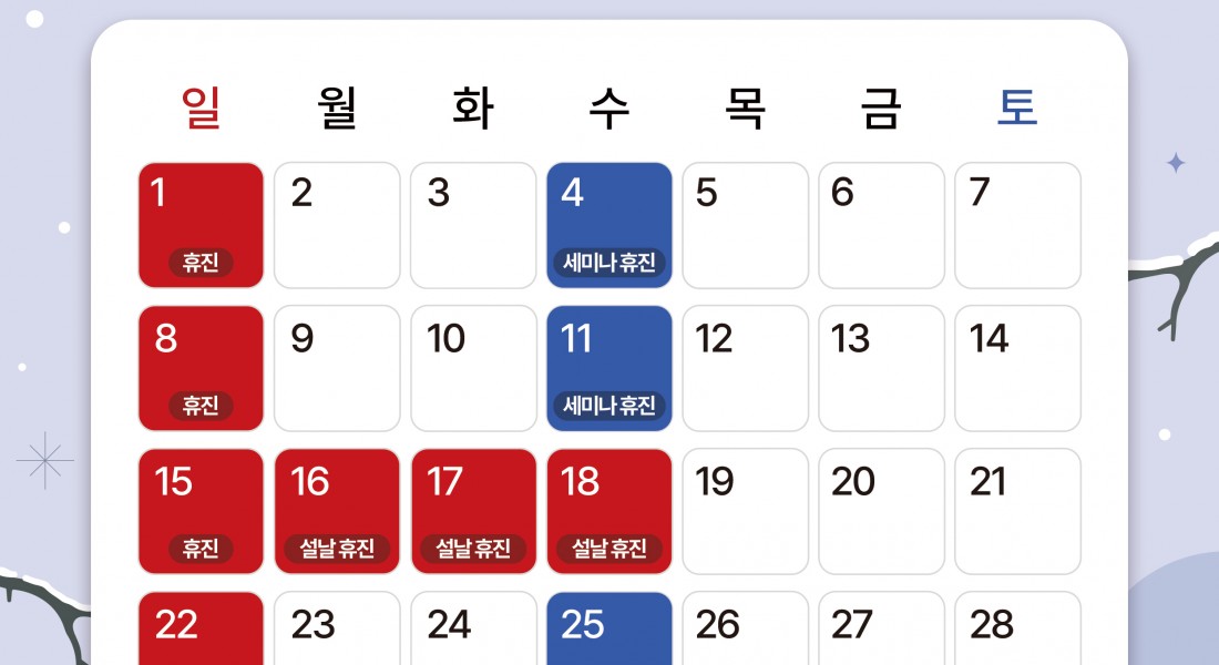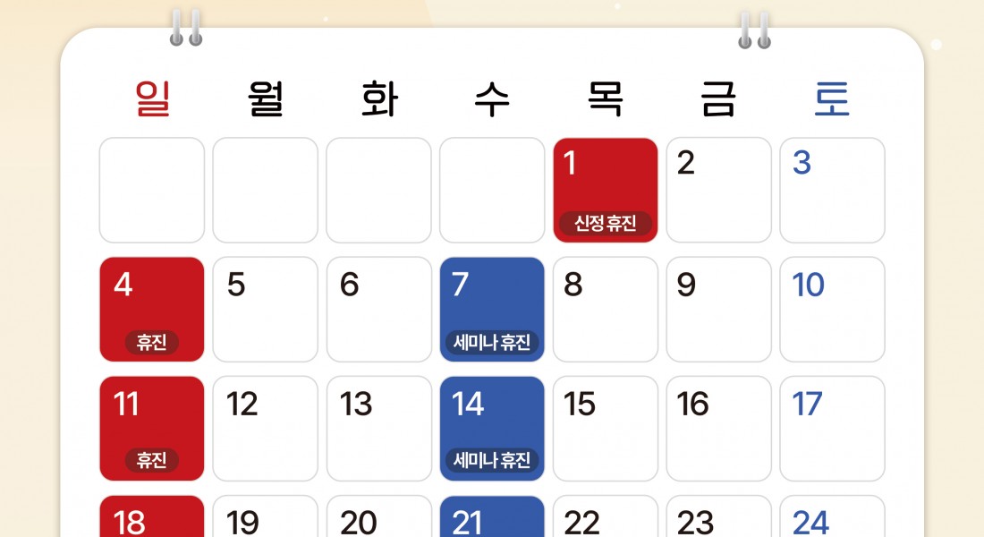 진료일정을 참고하시어 예약 및 내원에 불편함 없으시길 바랍니다.
